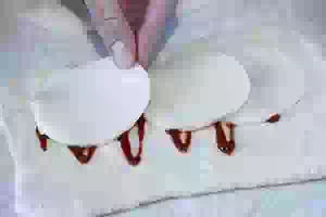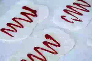 4. Ближе к левому краю прямоугольника уложить ломтики моцареллы.
