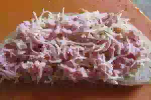 4. На ломтики хлеба выложите колбасно-сырную массу.
