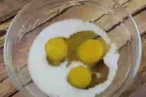 1. В глубокую ёмкость разбейте яйца. Влейте молоко. Посолите по вкусу.
