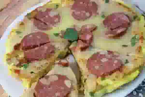 10. "Пицца" на хлебе, с колбасой и сыром, готова.