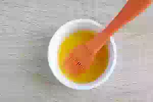 3. Яйцо разделяем на желток и белок. Белок нам не понадобится, а желток нужно разболтать вилкой. (Вместо желтка можно использовать остатки блинного теста или смесь молока, соли и муки.)