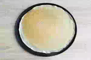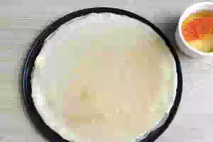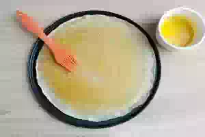 2. Для блинной пиццы подойдут тонкие блинчики, приготовленные практически без сахара, желательно большого диаметра. Для одной такой пиццы понадобится 4 блинчика. Я приготовила скороспелые блинчики, уменьшив количество сахара в тесте до 0,5 ст. ложки. Диаметр блинчиков - 22 см.