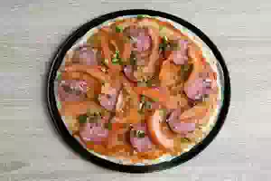 Как приготовить "Блинная пицца с колбасой и помидорами"