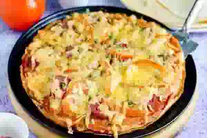 15. Пицца на блинах готова. Подавайте такую пиццу в горячем виде сразу после выпечки.