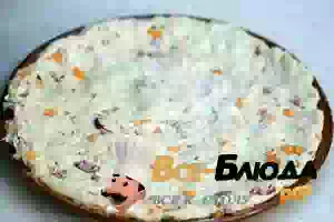 6. Посыпать пиццу тертой моцареллой и отправить в прогретую до 220С духовку примерно на 20-25 минут.