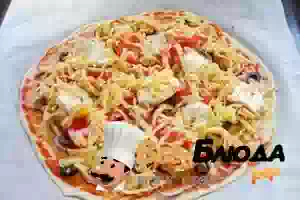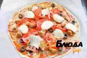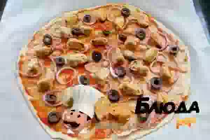 6. Выпекать в духовке, прогретой до 180С, на самом нижнем ярусе 5-7 минут. Достаточно лишь дождаться, когда расплавится сыр, а тонкое дрожжевое тесто пропечется очень быстро. Ни в коем случае нельзя передерживать пиццу в духовке, иначе мидии могут стать резиновыми. Подается пицца с мидиями сразу же, пока горячая.