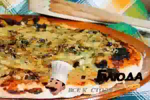 Пицца с сушеными грибами Ингредиенты: для теста: вода (теплая) - около 150мл масло оливковое - 2 ст.л. сухие дрожжи - 1 ч.л. соль - 1/4 ч.л. мука - 200г