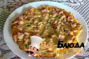 Пицца на сковороде из батона с ветчиной и сыром