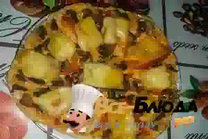 Пицца с грибами на сковороде