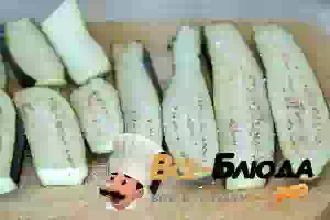 3. Когда соль на баклажанах растворится, смыть её под проточной водой, баклажаны отжать и порезать кубиками. Делается это не для того, чтобы убрать горечь, а чтобы баклажаны впитали меньше масла при жарке. Хотя горечь тоже уйдет, если она была.