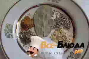 6. Приготовьте соль и приправы для плова: лавровый лист, кардамон, сушеный базилик, зира (кумин) и хмели-сунели. Добавьте соль и приправы в чашу к мясу и овощам.
