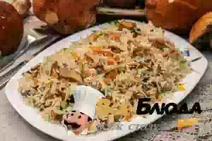 8. Готовый плов с грибами перемешать и можно подавать к столу.