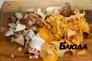 2. Свежие лесные грибы - у меня были белые и лисички - порезать пластинами.