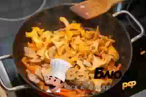 4. Когда овощная поджарка будет готова, переложить к ним нарезанные грибы. Продолжать жарить, помешивая, примерно 5-7 минут, чтобы из грибов ушла лишняя жидкость и они прихватились, подрумянились.