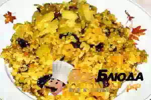 6. Залить водой, посолить, бросить сухой базилик и сварить как плов. Когда сварился, перемешать и оставить под крышкой на 5-10 минут, чтобы он отдышался.