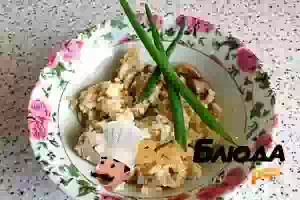 5. Обжарить желудки в мультиварке. Когда мясо будет почти готово, добавить в него овощи и грибы.