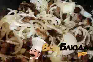 5. К мясу добавить лук репчатый.