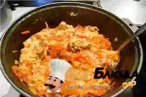 2. потом лук и морковь.