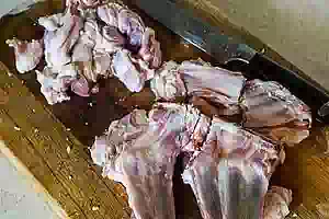Баранью грудинку хорошо промыть, срезать пленки и лишний жир. Ребра разрезать на отрезки по 2 ребрышка в каждом.