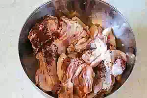 Мясо сложить в миску, посыпать солью и специями, можно капнуть немного растительного масла, чтобы специи лучше раскрылись. Перемешать мясо в миске и убрать в сторону, пока будете готовить овощи.