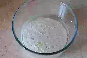 1. Рис промыть в несколько раз в холодной воде, затем пересыпать в миску, залить холодной водой и оставить на 40 минут. Через 40 минут рис откинут на сито, дать воде стечь.