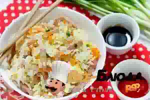 12. Чахан готов к подаче. Дополнительно подайте кетчуп и соевый соус.