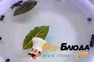 5. В посуде подходящего объема кипятим воду и заливаем ею банки. Прикрываем банки прокипяченными железными крышками. Оставляем на 20-30 минут. Когда вода станет теплой, сливаем ее в ту же кастрюлю и вновь доводим до кипения. Бросаем лавровый лист, сахар, душистый перец, соль и через 3 минуты снимаем с огня.