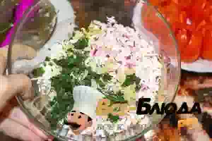 4. Заправить начинку майонезом. Хорошо все перемешать.