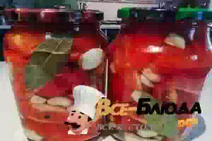 1. Так как это рецепт чесночных помидоров, то на одну банку объемом 1 литр потребуется аж две головки чеснока. Кроме этого, еще понадобится пару листочков лаврового листа и щепотку горошин перца.