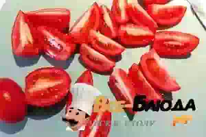 3. Помидоры помыть, нарезать дольками. Когда все ингредиенты подготовлены, можно приступать к стерилизации банок и крышек. Это важный этап рецепта, потому что и крышки, и банки должны быть нагретыми, ведь в них будет заливаться кипящий рассол. Крышки просто можно прокипятить в отдельной емкости. А банки простерилизовать, например, над паром от чайника.