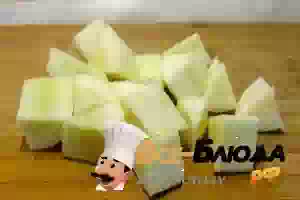 1. С кабачков срезаем кожуру, при необходимости удаляем твердые семена. Нарезаем овощи крупными кусками.