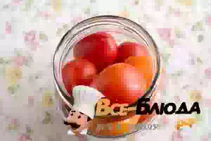 3. Укладываем в банку с ягодами томаты, стараясь заполнить ее до самого верха.