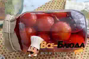 3. Укладываем в банку с ягодами томаты, стараясь заполнить ее до самого верха.