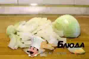 2. Очищенную луковицу нарезать тонкими четвертинками колец.