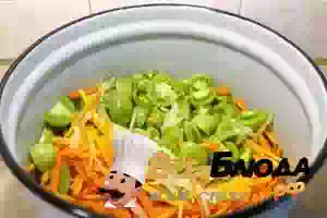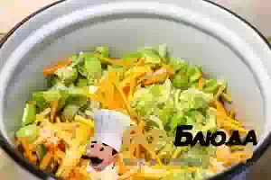 3. Морковь вымыть, очистить и порезать тонкими длинными брусочками. Для нарезки подойдет терка для корейской моркови.