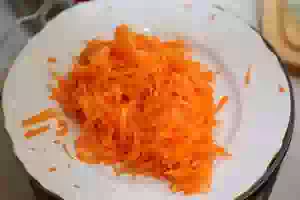 2. Морковь очистить и натереть на крупной терке.