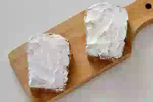 2. Намазать подсушенный хлеб сливочным сыром.