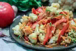 Салат из цветной капусты с огурцами, помидорами и морковью
