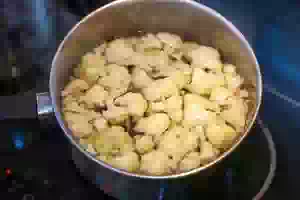 1. Цветную капусту сполоснуть под проточной холодной водой, разобрать на небольшие соцветия и погрузить на 30 минут в подсоленную воду.