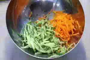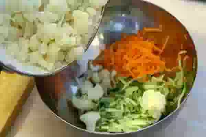 5. В салатнике соединить цветную капусту, огурец и морковь.