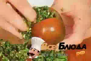 2. Помидоры необходимо предварительно помыть, а потом разрезать пополам, но не доходя до конца примерно на 1 сантиметр. После чего аккуратно выложить в середину каждого помидора приготовленную начинку.