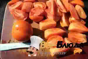1. Для приготовления нам понадобятся спелые помидоры. Неважно, мелкие они или крупные - подойдут любые. Помидоры тщательно промываем в прохладной воде. Выкладываем их на доску. Нарезаем крупными дольками.