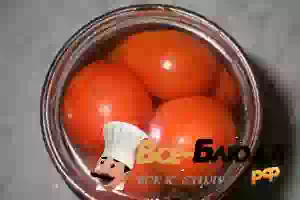 4. В чайнике или кастрюле кипятим воду и заливаем кипятком помидоры дважды.