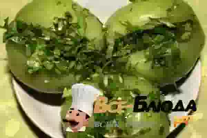 4. Наполняем помидоры зеленью с перцем и чесноком. Вам понадобится примерно по 1 ст.л. на каждый томат.