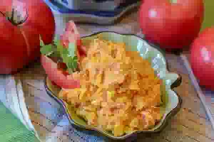 Салат из пекинской капусты с куриной грудкой, сыром и помидорами