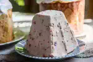6. Переложите творожную массу в пасочницу, выстеленную марлей, поставьте под пресс и убрать в холодильник на ночь. Если на тарелке с пасхой будет образовываться жидкость, сливайте её. Утром перевернуть пасочницу на тарелку и снять марлю.