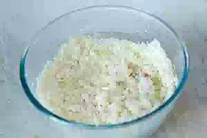 1. Свежий творог сложить в марлю, завязать узелок и подвесить над раковиной, чтобы стекла сыворотка.