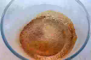 3. Налить воду в муку с дрожжами.