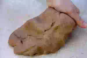 5. Продолжить месить тесто на столе, пока оно не станет мягким, податливым как пластилин.