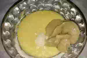 2. Муку обязательно просеиваем и понемногу добавляем в тесто. После первой порции муки добавляем в тесто смалец. Перемешиваем и постепенно добавляем оставшуюся муку до образования однородного теста.